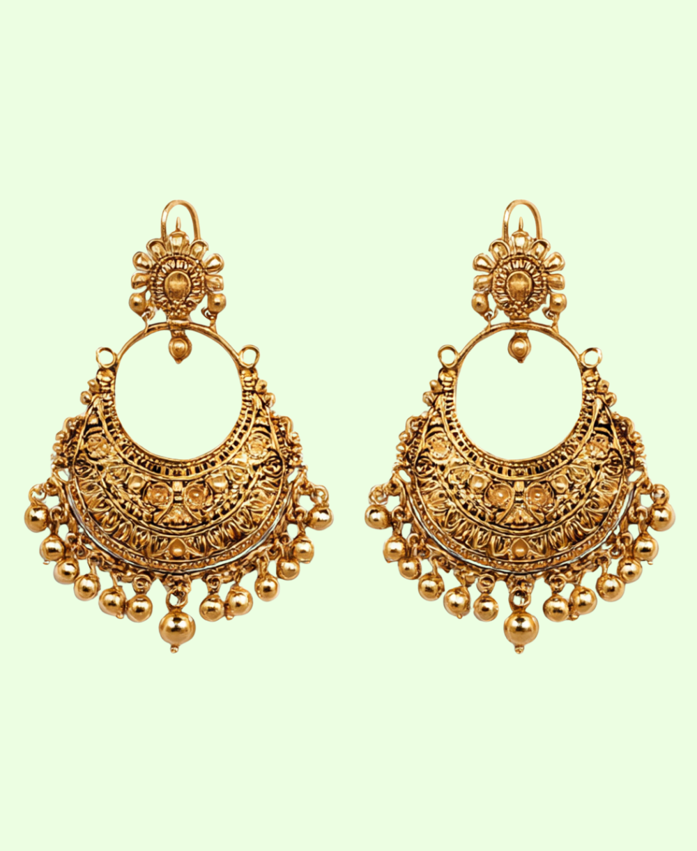 Elegant gold plated chandbali ear rings crafted for a regal and festive look.